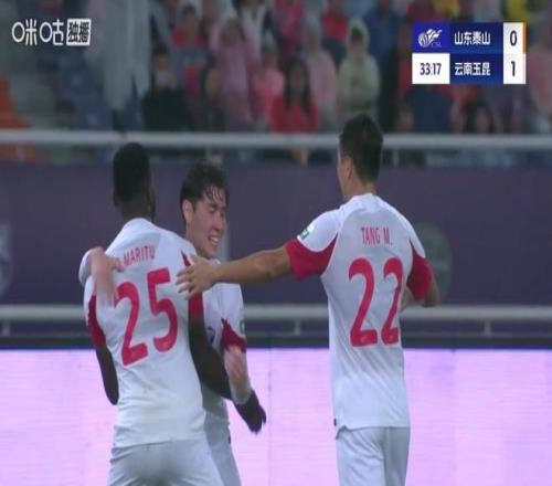 另外两场比赛中,山东泰山坐镇主场迎战云南玉昆。上半场泰山队进入状态太难,云南玉昆反客为主,第32分钟奥斯卡传中助攻侯永永头球破门,帮助球队1-0打破僵局。尾声阶段,唐淼单刀球入禁区后的推射偏出,上半场云南玉昆客场1-0领先。