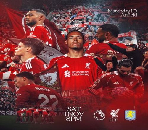 周六英超前瞻:利物浦vs阿斯顿维拉