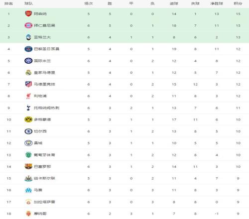 随着拜仁31,巴萨21,利物浦10绝杀国米,欧冠最新积分榜出炉